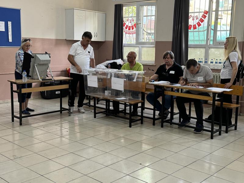 Tekirdağ'da da çifte vatandaşlar, 50. Yıl Ortaokulu'nda oylarını kullanıyor.