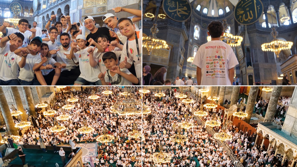 "210 bin öğrencimizi ağırladık. Farklı etkinliklerde buluştuk. Tarihi geziler yaptık, kültürel bilincimizi artırdık. Yine Ayasofya bunlardan bir tanesi oldu. Buradaki atmosferi, heyecanı, coşkuyu anlatmam gerekirse, kelimelere sığdıramam. 'Bu gençlik nereye gidiyor?' sorusunun cevabı. Hani büyükler hep sorar ya, cevabı bence Ayasofya'da saklı. Burada çok farklı bir anlam, çok farklı bir mana var. Kötülerin sesi yüksek çıktığı için iyilere galebe çalmaya çalışıyorlar. Buna izin vermeyeceğiz."