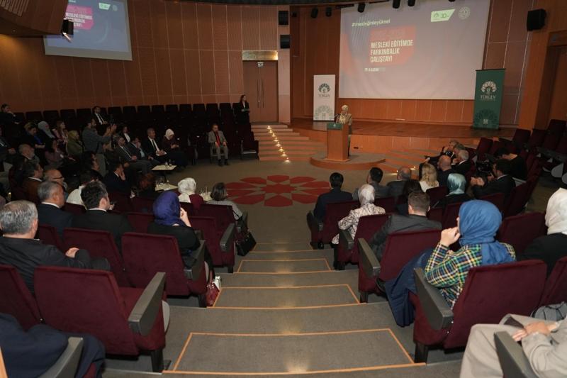 "Mesleki Farkındalık ve Bilinçlendirme Projesi" hakkında konuşan TÜRGEV Yönetim Kurulu Başkanı Av. Hatice Akıncı Yılmaz, mesleki eğitimin Türkiye'nin üretim gücünü, kültürel devamlılığını ve istiklal ruhunu besleyen en önemli alanlardan biri olduğunu vurguladı.
