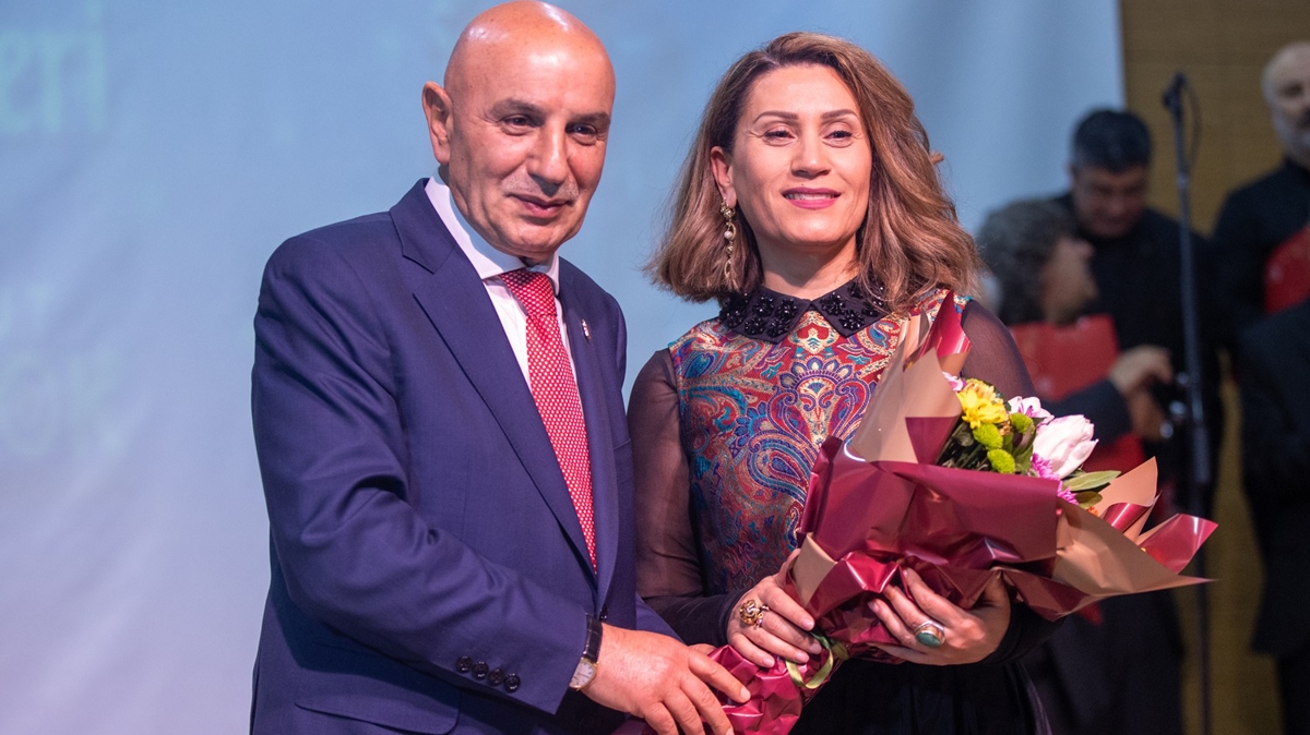 Altınok, konuşmasının ardından Azerin'e çiçek takdim ederek, koro üyeleriyle hatıra fotoğrafı çektirdi.