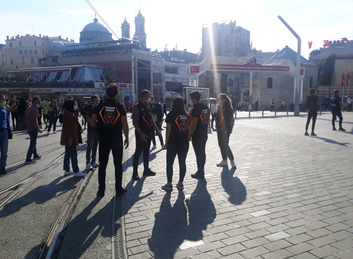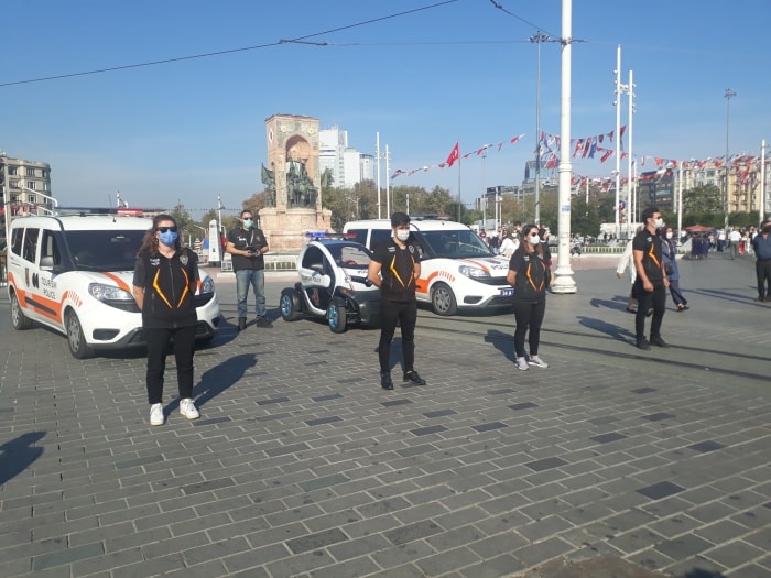 İstanbul Emniyet Müdürlüğüne bağlı İnsansız Hava Aracı Büro Amirliğine bağlı polis memurları da uçurdukları İHA'dan maske takılması ve Kovid-19 tedbirlerine uyulması için Türkçe ve İngilizce anonslar yaptı.