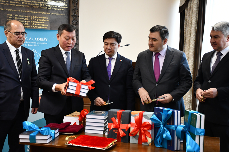 Etkinlikte Türk Akademisi Başkan Yardımcısı Ashat Kesikbayev, Lev Gumilyov Avrasya Milli Üniversitesi Rektör Yardımcısı Ardak Beysenbay, Azerbaycan'ın Astana Büyükelçisi Agalar Atamoglanov, Kırgızistan'ın Astana Büyükelçisi Dastan Düyşekeyev, Türkmenistan'ın Astana Büyükelçisi Batır Recepov, Türkiye'nin Astana Büyükelçiliği Eğitim Müşaviri Ömer İnan, Türk Akademisinin "Türk Dillerinin Terminolojik Sözlükleri" projesi kapsamında yayınladığı her biri 5 bin terimden oluşan Türk dillerinde dil bilimi, ekonomi ve askeri alanlardaki terminoloji sözlüklerinin kurdelesini kesti.