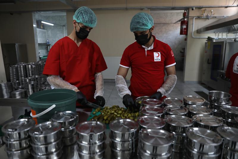 Diyarbakır'da Dicle Üniversitesi yerleşkesinde yer alan Türk Kızılay Aşevi'nde ramazan boyunca her gün pişirilen 3 çeşit yemek, Türk Kızılay personeli ve gönüllüler tarafından bakıma muhtaç yaşlı, hasta ve engelli kişilerin evlerine iftardan önce ulaştırılıyor.