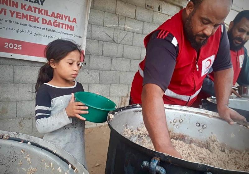 Gazze'de çatışmaların başladığı ilk günden bu yana yardım faaliyetlerini sürdüren Türk Kızılay, aşevi aracılığıyla her gün binlerce kişiye sıcak yemek de ulaştırıyor.