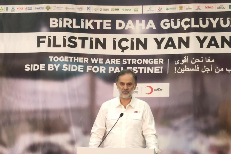Ortak yardım kampanyası başlattıklarını söyleyen İDSB Genel Sekreteri Eyüp Akbal da, "İsrail'in Filistin'de uyguladığı politikaların uluslararası insan hakları örgütleri ve Birleşmiş Milletler raporlarına göre açıkça etnik ayrımcılık suçu olarak tescillenmiş olmasına rağmen İsrail, tüm dünyanın gözü önünde bu suçu işlemeye aynı cüretle devam etmektedir. Her zaman dediğimiz gibi Filistin davası ne sadece Filistinlilerin ne de Arapların bir davasıdır. Bu dava hepimizin, bu ümmetin davasıdır. Bu dava özünde bir insanlık sorunu, mazlum bir milletin varoluş sorunu, bir insan hak ve hürriyetleri sorunudur. Uluslararası toplum bir an önce üzerine düşeni yapmalı, İsrail ve ABD'nin uluslararası hukuku ve bu yönde gelişen müktesebatı hiçe sayarak artan saldırganlığını sona erdirmek için süratle harekete geçmelidir. Hür dünyanın gözü önünde bir insanlık ayıbı olarak devam eden katliamların ve vahşetin gün geçtikçe daha da artması karşısında sessiz kalan uluslararası güç odaklarına inat Kızılay başta olmak üzere çok sayıda sivil toplum kuruluşumuzla beraber sivil dayanışmayı temin amacıyla kurulan İDSB İnsani Yardım Platformu ekseninde Kızılay koordinasyonuyla Gazze için bugün ortak bir yardım kampanyası başlatıyoruz' ifadelerini kullandı.