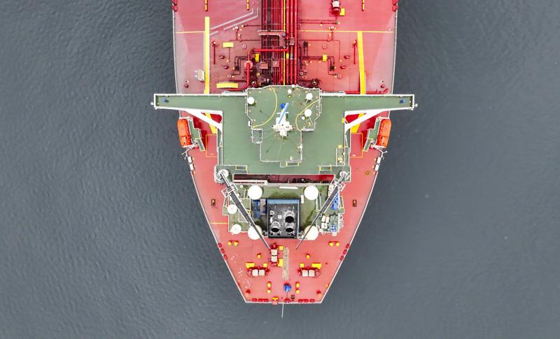 Tedbir amaçlı ekiplerin çevresinde beklediği gemi, dronla havadan görüntülendi.