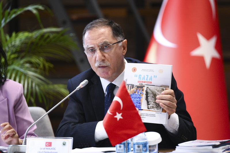 Türkiye ombudsmanlığı olarak Türkiye'deki 2,5 milyon Suriyeli göçmen, Ukrayna savaşından kaçıp Macaristan'a sığınan göçmenler ve Ermenistan'ın işgal ettiği Azerbaycan ile ilgili de raporlar hazırladıklarını anlatan Malkoç, katılımcılara bu raporları gösterdi.
