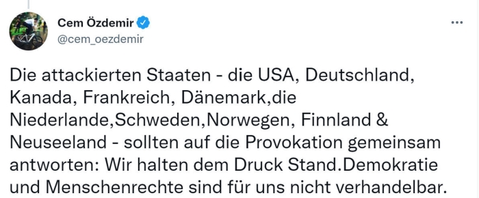 Almanya'da Türkiye karşıtlığıyla bilinen Yeşiller milletvekili Cem Özdemir de konuyla ilgili bir açıklamada bulundu.