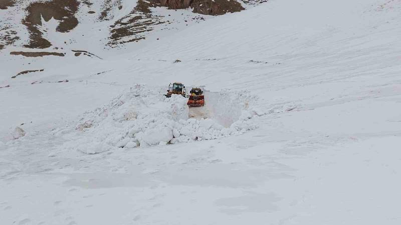 Zor şartlarda çalışan karla mücadele ekipleri, ulaşımın tekrar sağlanması için bölgede kar savurma araçlarıyla yolları ulaşıma açıyor.