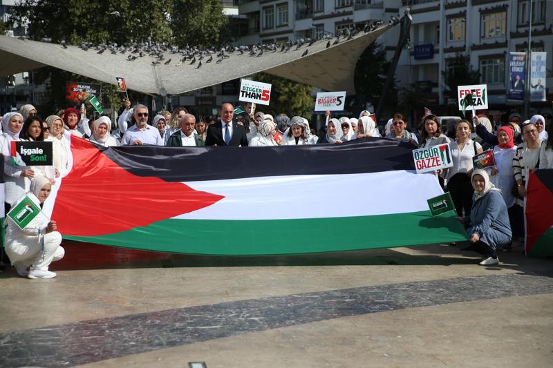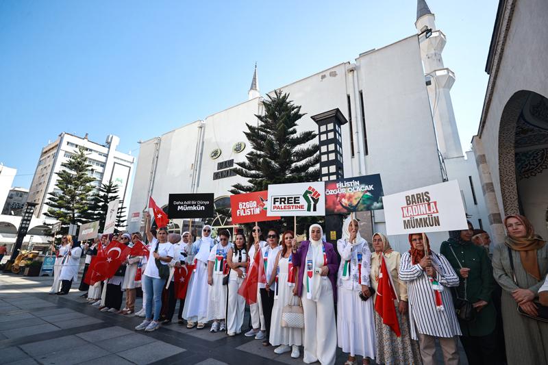 MERSİN'DE AK PARTİ'Lİ KADINLAR GAZZE İÇİN "SESSİZ" İNSAN ZİNCİRİ OLUŞTURDU
