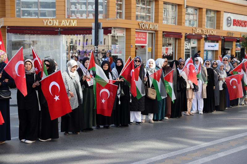 Sivas'ta, AK Parti Kadın Kolları tarafından "Gazze için Sessiz Çığlık" etkinliği düzenlendi. Sivas Devlet Hastanesi önünde ellerinde Türk ve Filistin bayraklarıyla toplanan kadınlar, kol kola girerek zincir oluşturdu ve Cumhuriyet Meydanı'na kadar yürüdü.
