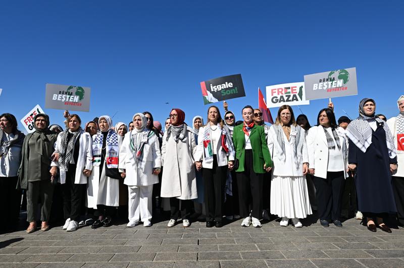 AK Parti Kadın Kolları, Gazze'de yaşanan zulme dikkat çekmek için İstanbul Üsküdar Meydanı'nda "Gazze İçin Sessiz Çığlık" adıyla düzenlenen etkinlikte, ellerini kenetleyerek sahil hattı boyunca zincir oluşturdu.