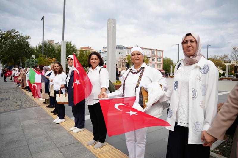 Çankırı'da AK Parti İl Kadın Kolları tarafından "Gazze İçin Sessiz Çığlık" programı düzenlendi. Kucaklama Taşı mevkisinden başlayan programda, katılımcılar el ele tutuşarak oluşturdukları zincirle Karatekin Parkı'na kadar yürüdü.