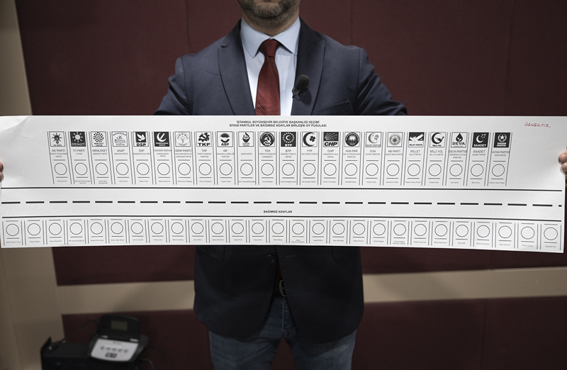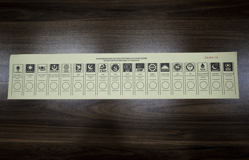 Büyükşehir belediye başkanlığına ilişkin oy pusulası "beyaz", il genel meclisi üyeliklerine ilişkin pusula "turuncu", belediye başkanlığına ilişkin oy pusulası "mavi", belediye meclisi üyeliğine ilişkin oy pusulası ise "sarı" renkli olacak. Oy pusulaları tek zarfa konulacak.