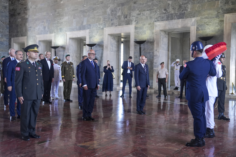 Beraberindeki heyetle Aslanlı Yol'dan yürüyerek Gazi Mustafa Kemal Atatürk'ün mozolesine gelen Karis, çelenk bırakarak saygı duruşunda bulundu.