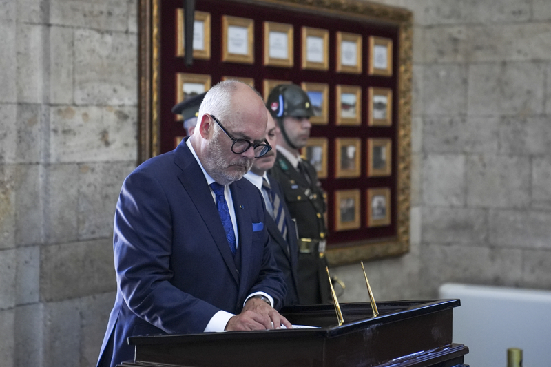 Ardından hatıra fotoğrafı çektiren ve Misak-ı Milli Kulesi'ne geçen Karis, Anıtkabir Özel Defteri'ni imzaladı.