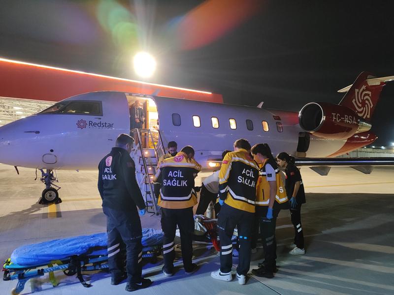 Yaralıları taşıyan Sağlık Bakanlığına ait ambulans uçak, Sabiha Gökçen Havalimanı'na indi.