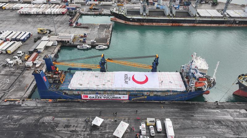 Bu kapsamda Türk Kızılay tarafından hazırlanan ve gıda, hijyen, giyim, battaniye, barınma ve bebek malzemeleri ağırlıklı yaklaşık 1400 ton temel insani yardım malzemesinin yer aldığı "İyilik Gemisi"nin uğurlanması için Mersin Uluslararası Limanı'nda tören düzenlendi.