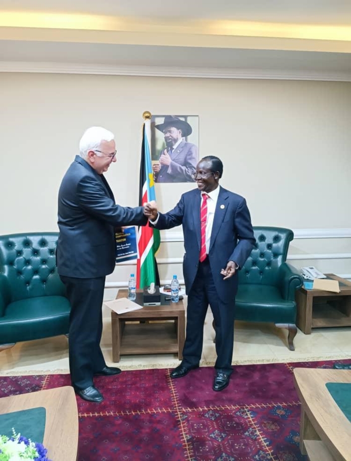 Toplantı sonunda Cumhurbaşkanı Yardımcısı Igga, Büyükelçi Mutaf'a vergilendirme konusunda yeni çıkan imzalı kitabını takdim etti.