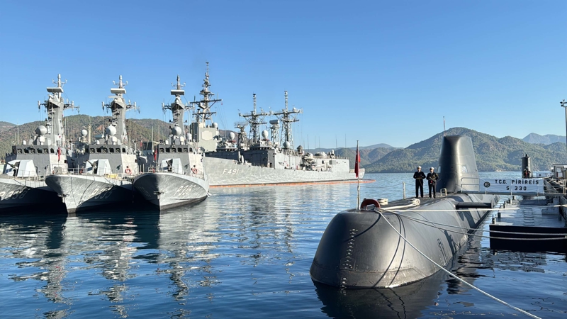 Deniz Kuvvetleri Komutanlığınca yapılan tatbikat kapsamında gözlemcilere ve basın mensuplarına Muğla'nın Marmaris ilçesindeki Aksaz Deniz Üssü iskelesinde brifing verildi.