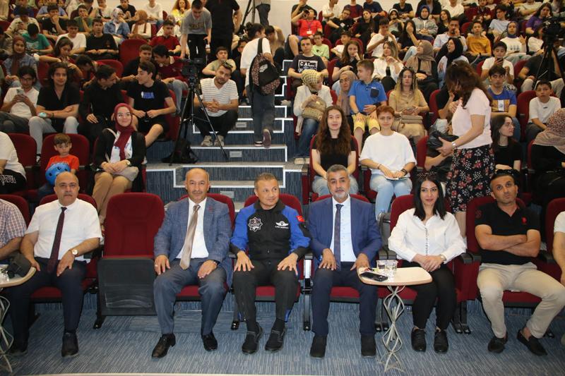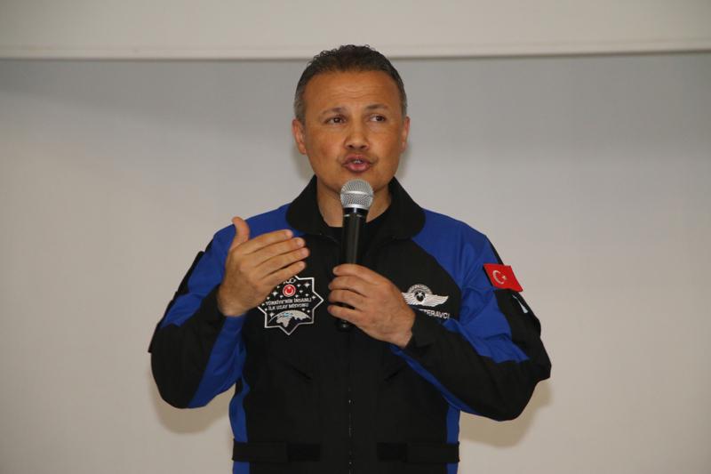 "Gelecekte altına sizlerin imza atacağı, Türkiye Cumhuriyeti'nin adım atmış olduğu yeni bir alanın başlangıç hikayesi. Türkiye Cumhuriyeti'nin 100'üncü yılında kendisine hedef koymuş olduğu bir alanda, uzay misyonu alanında görev verilmiş, o görevi tamamlayıp karşınıza gelmiş bir kardeşiniz, abiniz olduğum halde benim bile hayallerimde 43 yaşıma kadar uzay yoktu. İlla ki geleceğinizde uzayla ilgili bir iş yapmanıza gerek yok. Ama buradan çıkaracağımız mesaj çok önemli. Bu ülkenin topraklarında, bayrağımızın dalgalandığı her yerde devletimizin güçlü iradesi olduğu sürece yürümekten tereddüt edebileceğiniz hiçbir yol yok. Kendinize hedef koymaktan geri kalacağınız hiçbir alan yok."
