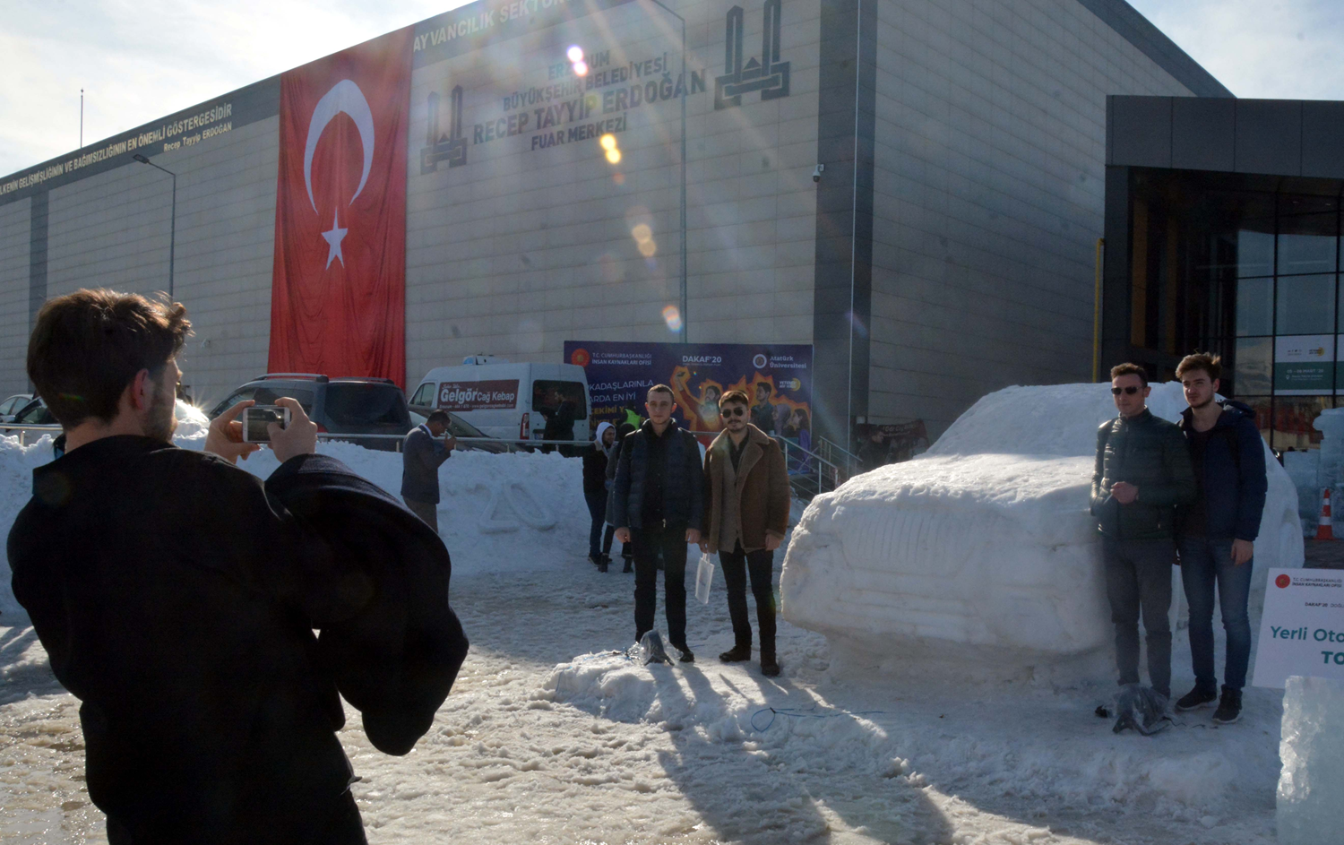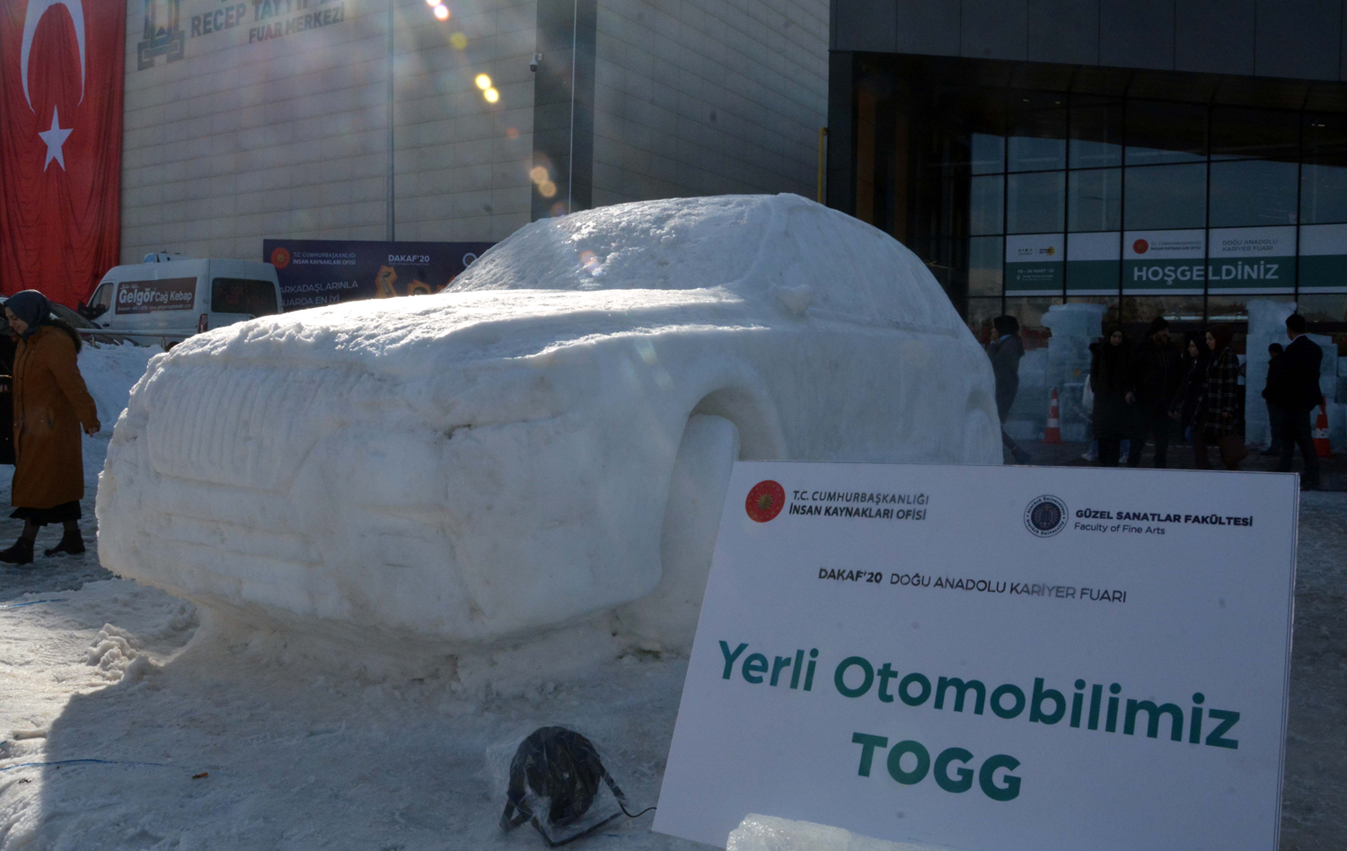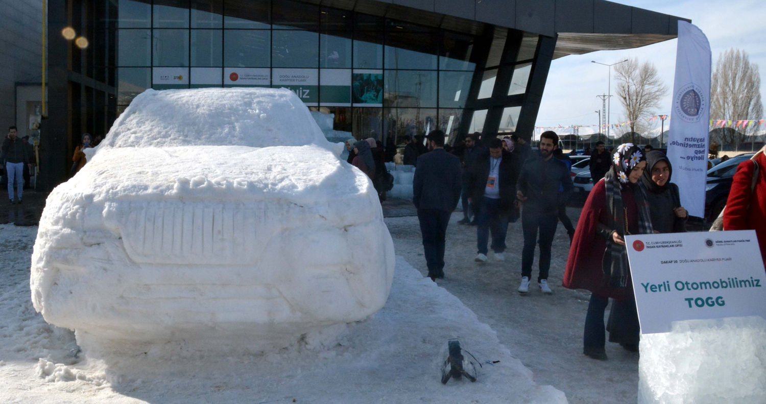 Kentin farklı noktalarından topladıkları kar kütlelerini 3 günlük çalışmayla Türkiye Otomobili Girişim Grubu'nun (TOGG) mühendis ve tasarımcıları tarafından geliştirilen ve Türkiye'nin 60 yıllık otomobil özlemini çektiği milli otomobilin de bulunduğu dev heykeller üretildi.