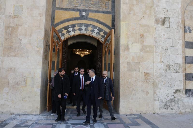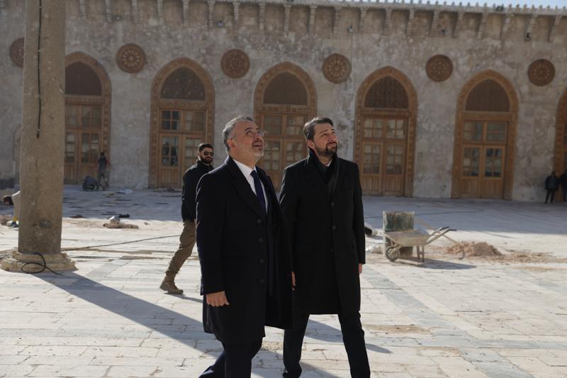 Halep'in en eski ve en önemli mekanlarından biri olan Emevi Camisi'ne de ziyarette bulunduklarına işaret eden Yılmaz, Hazreti Zekeriya'nın kabrinin bulunduğu camide Türk İslam sanatına ait metal, ahşap ve çini süslemelerin yer aldığını ve ramazan ayına yetiştirilmesi için restorasyon çalışmalarının sürdüğünü aktardı.