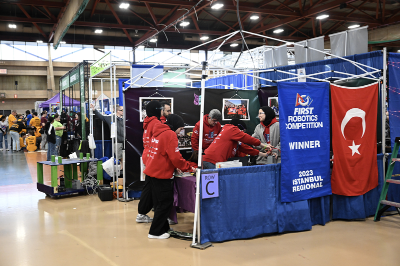 Geçen yıl Türkiye'de, 5 misafir ülkenin de yer aldığı FRC İstanbul Bölgesel 2023 yarışmasında birinci olan Techtolia Robotics takımı, New York'ta 3 gün sürecek yarışmanın ilk gününde, rakiplerini tanıma fırsatı yakalarken, fuar alanının kendilerine ayrılan bölümünde mentör hocalarıyla birlikte ziyaretçilerin sorularını cevapladı.