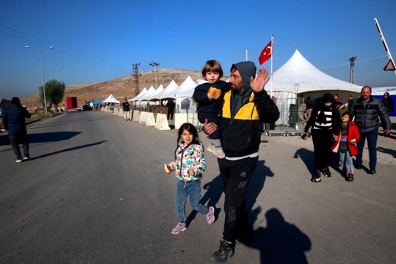 Suriyeliler, sınır kapısındaki işlemlerinin tamamlanmasının ardından geçiş yapıyor.