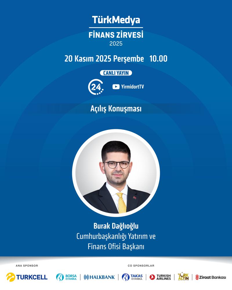 TürkMedya Finans Zirvesi; 20 Kasım Perşembe günü saat 10.00 itibariyle 24 TV ve 24 TV YouTube kanalında canlı yayında izleyicileriyle buluşacak.