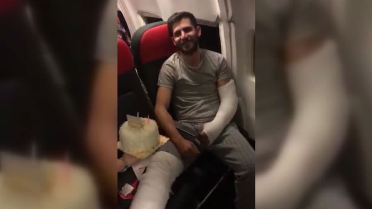 İyileşmesinin ardından Sabiha Gökçen Havalimanı'ndan THY'ye ait tarifeli uçakla memleketi Erzincan'a hareket eden Hanözü'ne kabin ekipleri ve pilotlar tarafından doğum günü sürprizi yapıldı.