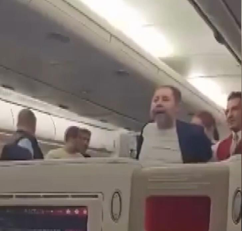 O anlar uçakta bulunan başka yolcular tarafından cep telefonu ile kayıt altına alındı. Kural dışı yolcu kendisini uyaran başka yolcuya, "Sen benim kim olduğumu biliyor musun. Ben milyar dolarlık adımım, ben Türkiye'yi satın alırım. Gel buraya l..," diyerek tehditler savurdu. Kelepçelenen kural dışı yolcu uçağın İstanbul Havalimanı'na inişinin ardından polis ekiplerine teslim edildi.