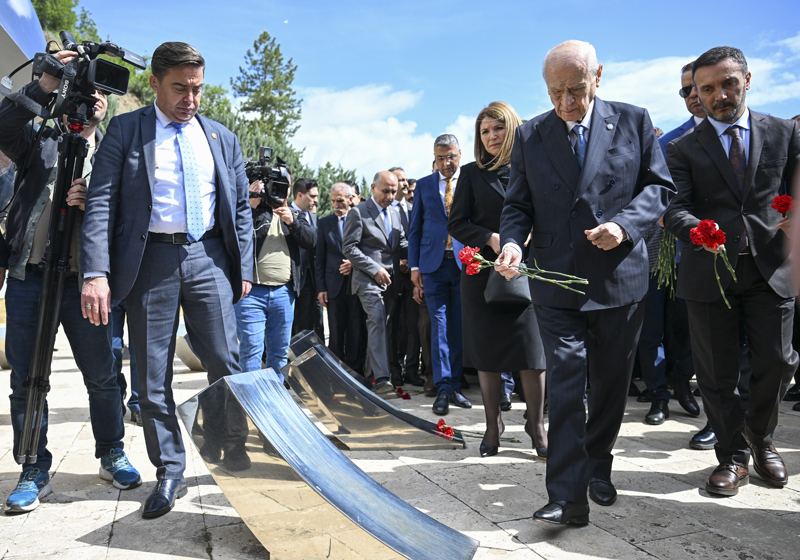 Bahçeli, Kur'an-ı Kerim tilavetinin ardından dua ederek, şehit isimlerinin yazılı olduğu alana karanfil bıraktı.