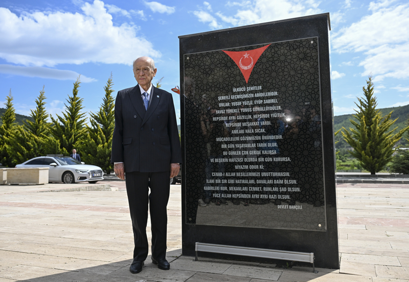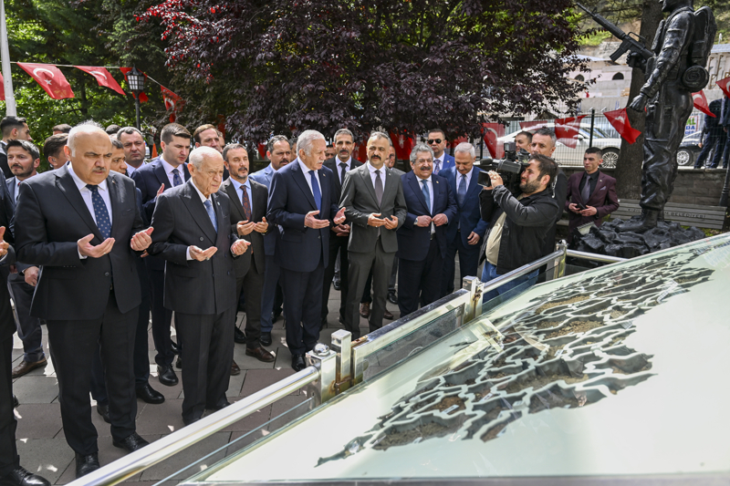 Anıtta bulunan "Gökbörü Otağı"nda bir süre dinlenen Bahçeli, ardından Şehit Fatih Duru Parkı'ndaki şehit askerlerin künyelerinin asılı olduğu "Şehit Anıt Ağacı"nı ziyaret etti.