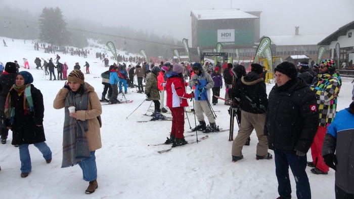 Yerli turist sayısının ağırlık gösterdiği Uludağ, başta Orta Doğu ülkeleri olmak üzere Rusya ve Azerbaycan'dan gelen tatilcileri ağırladı. Otel ücretlerinin kişi başı gecelik 3 bin 500 lira olduğu Uludağ'da, yeni yılın ilk hafta sonunda pistlerde adım atacak yer kalmadı.