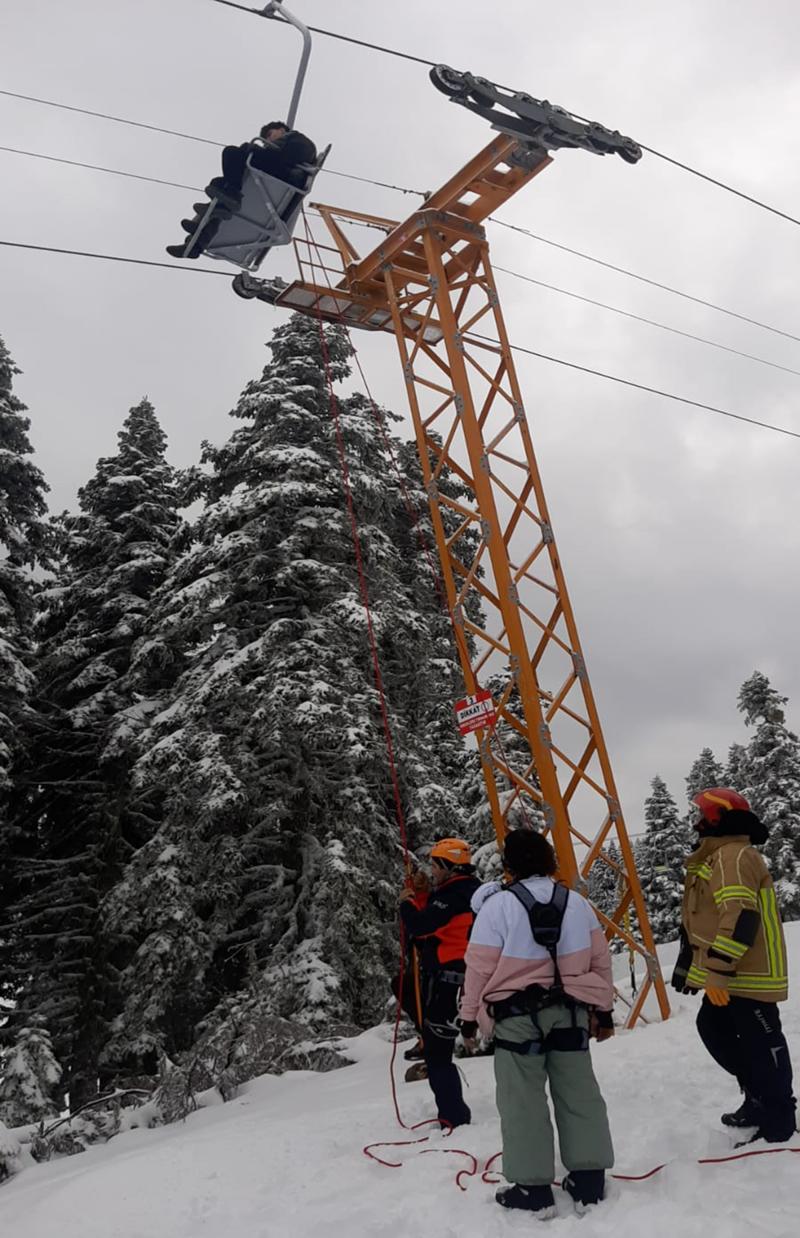 Uludağ'daki Oteller Bölgesi'nde, 51 kişiyi taşıyan telesiyej henüz bilinmeyen nedenle arızalandı.