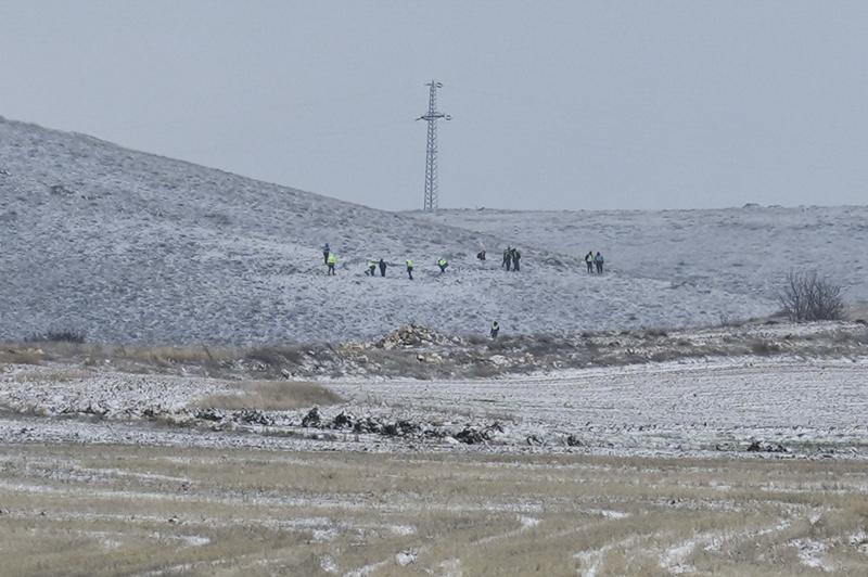 Haymana'nın Kesikkavak köyü yakınına düşen jetin enkazının bulunduğu alandaki çalışmalara sabahın ilk saatlerinde yeniden başlandı.