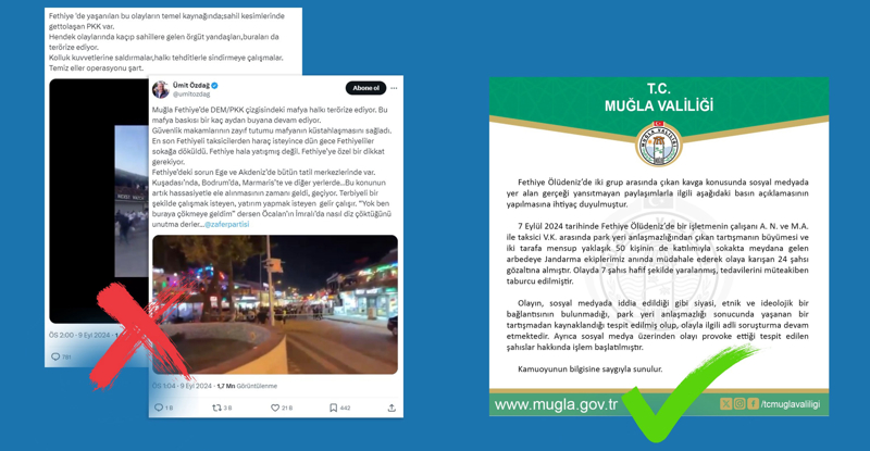 DMM'den yapılan açıklamada, Fethiye'de iki grup arasındaki kavga ile ilgili sosyal medyada ortaya atılan iddiaların kamuoyunu manipüle etme amaçlı olduğu kaydedildi.
