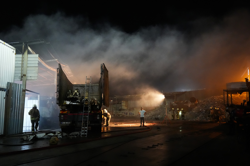 Tesisin depolama kısmında çıkan yangın kısa sürede büyüyerek orada bulunan kamyonet, kamyon ve iş makinesine sıçradı.