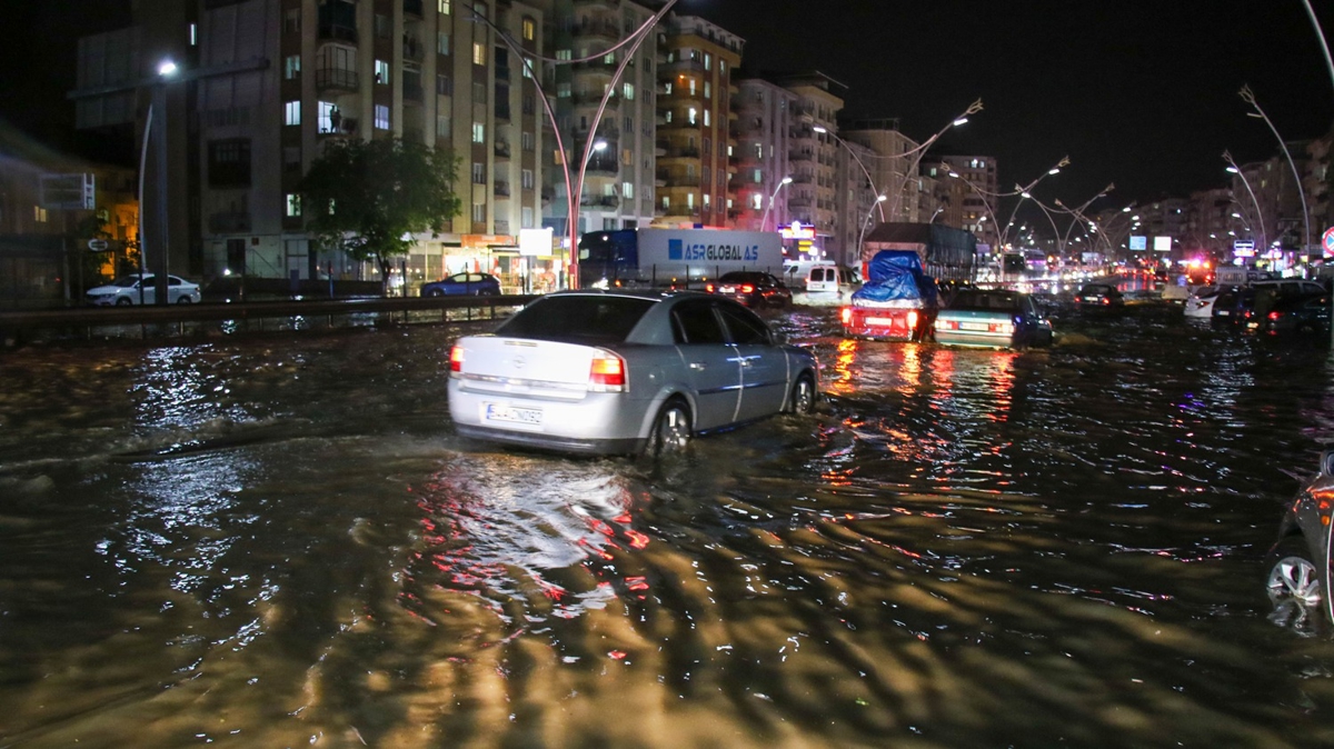 Otogar kavşağı yakınlarında çok sayıda araç suda mahsur kaldı.