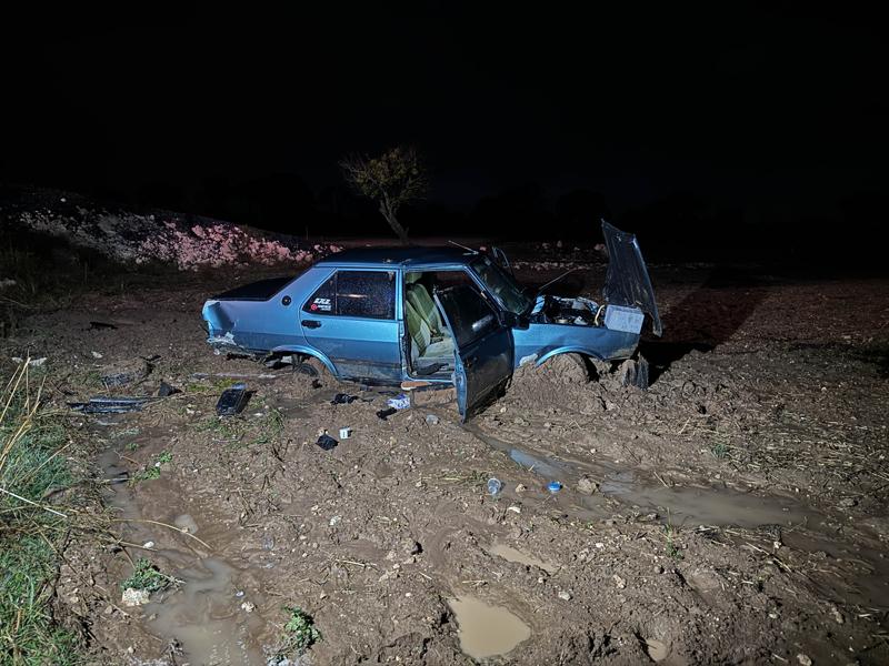 Çarpışmanın etkisiyle 45 LM 065 plakalı otomobil, yaklaşık 5 metre yükseklikten yolun alt kısmındaki tarlaya düştü.