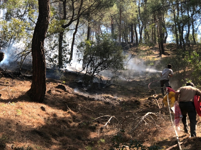 Merkeze bağlı Sarıdere köyü yakınlarındaki ormanlık alanda henüz belirlenemeyen nedenle yangın çıktı.
