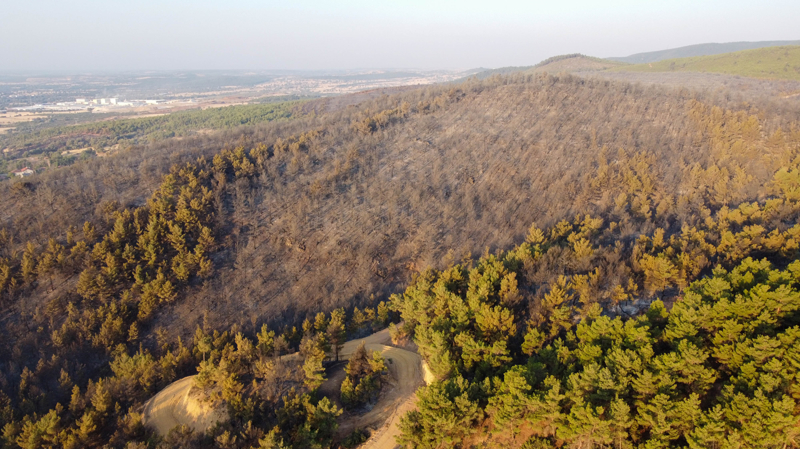 Öte yandan yanan alanlar, dronla görüntülendi.