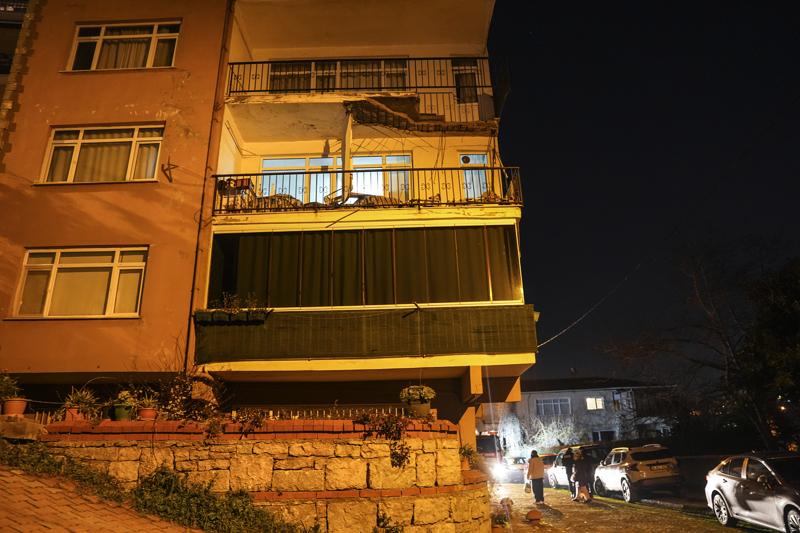 Apartmandan seslerin geldiğini fark eden ve balkon zemininin çöktüğünü gören bina sakinleri dışarı çıktı.
