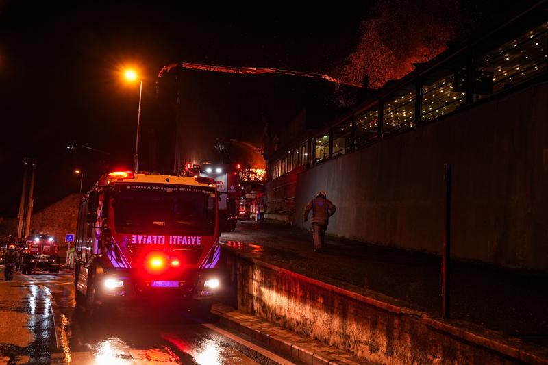 Üsküdar'da bir metruk binada çıkan yangına itfaiye ekiplerince müdahale ediliyor.
