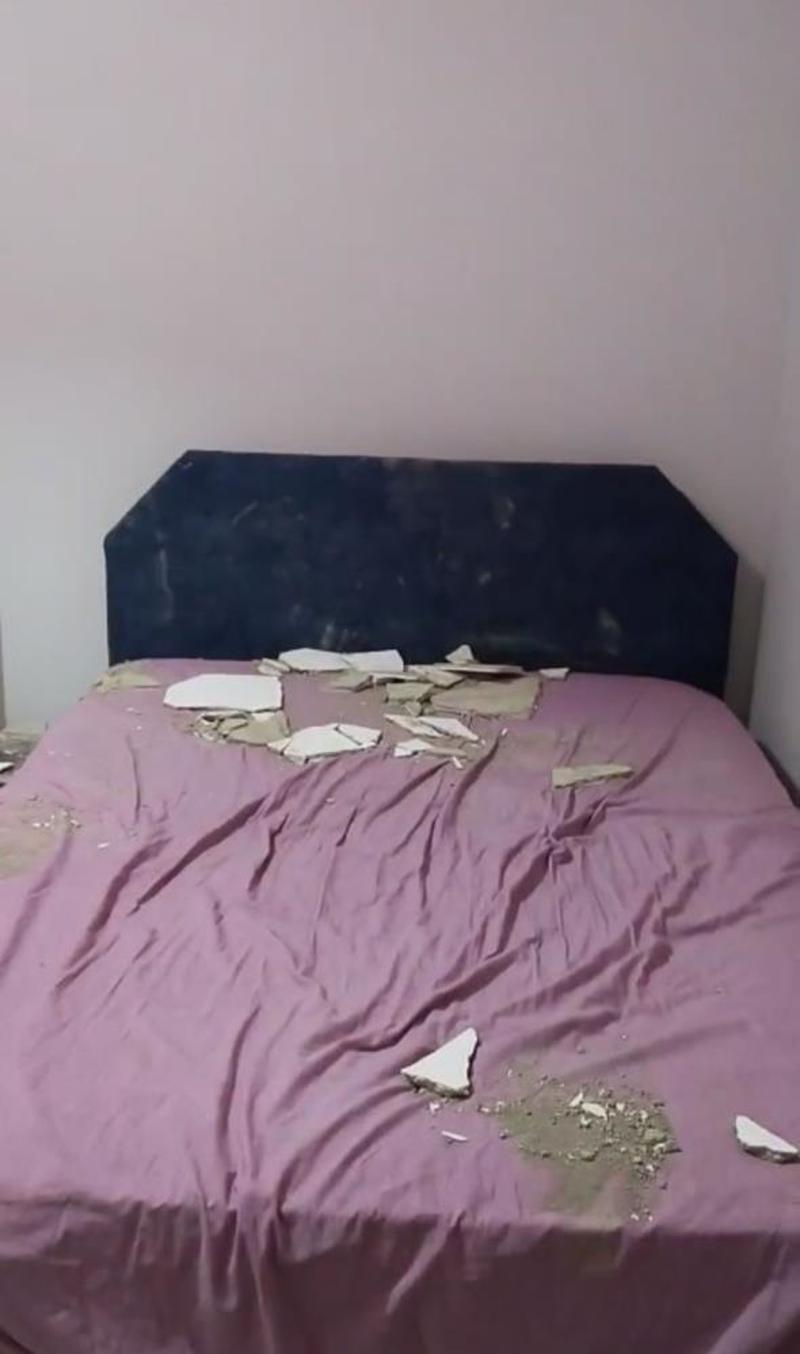 Tedavisi tamamlanan Elif K., sabah saatlerinde hastaneden taburcu oldu. Dökülen molozlarla harabeye dönen oda ise çift tarafından görüntülendi.