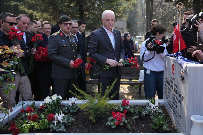Şehitlerin yakınlarına başsağlığı dileyen Gül, daha sonra kabirlere karanfil bırakıp dua etti.