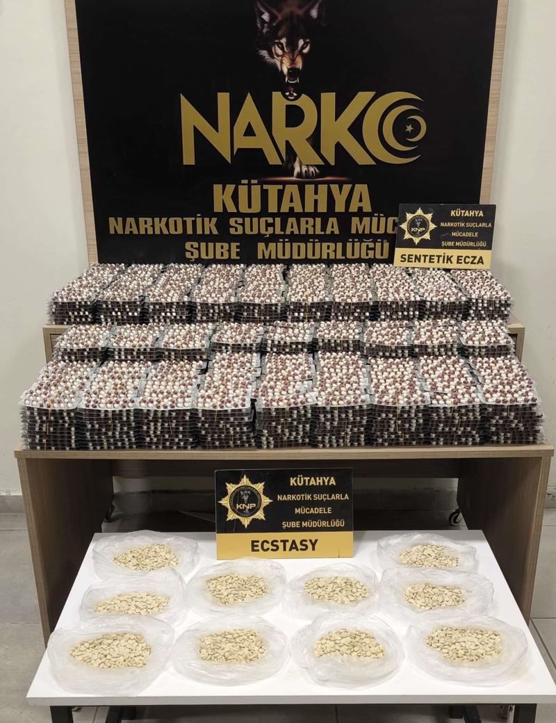 O.M'nin bulunduğu araçta arama yapan ekipler, araçtaki valizler içerisinde 28 bin 168 sentetik ecza ve 5 bin 138 uyuşturucu hap ele geçirdi.