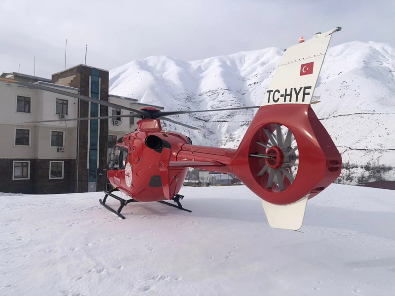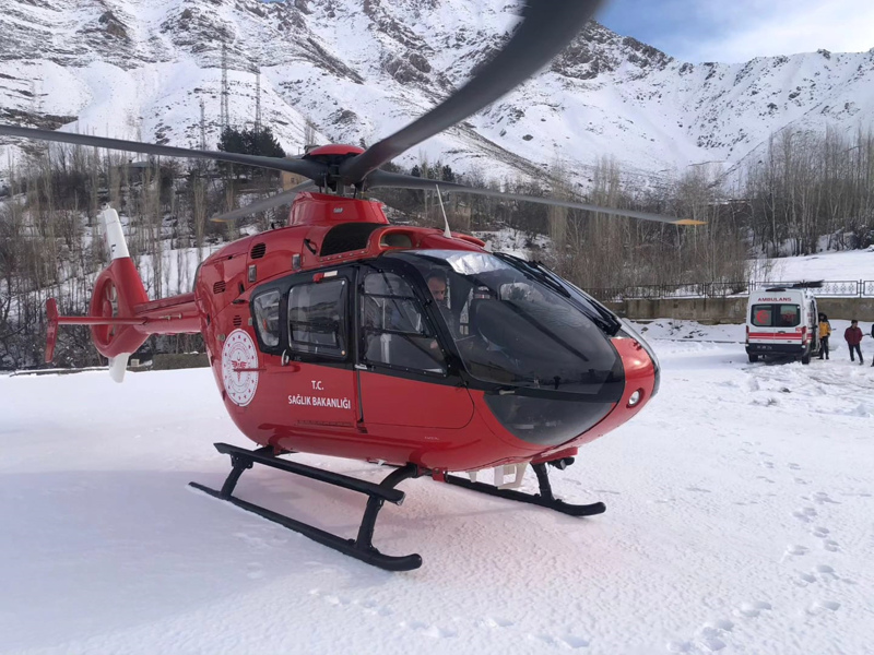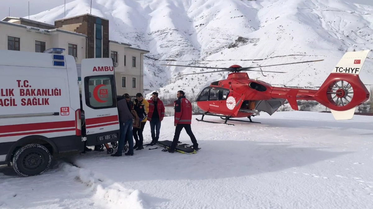 Van-Bahçesaray yolunun kapalı olması nedeniyle ilçeye yönlendirilen ambulans helikoptere alınan hasta, Van Eğitim ve Araştırma Hastanesine kaldırıldı.