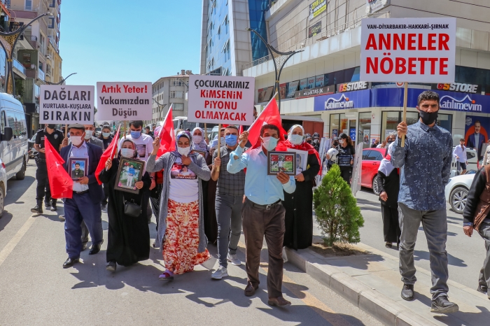 Terör örgütü PKK ve HDP aleyhine slogan atarak HDP İl Başkanlığı önüne kadar yürüyen aileler, partililere tepki gösterdi, çocuklarına teslim olmaları çağrısında bulundu.